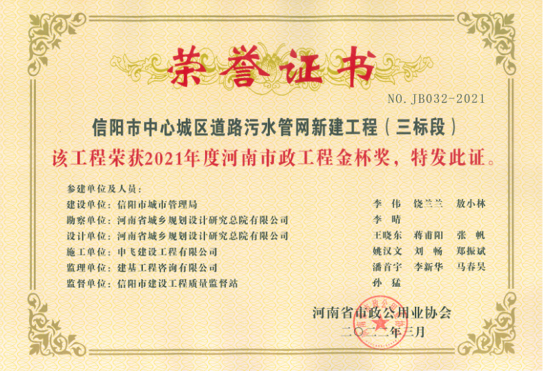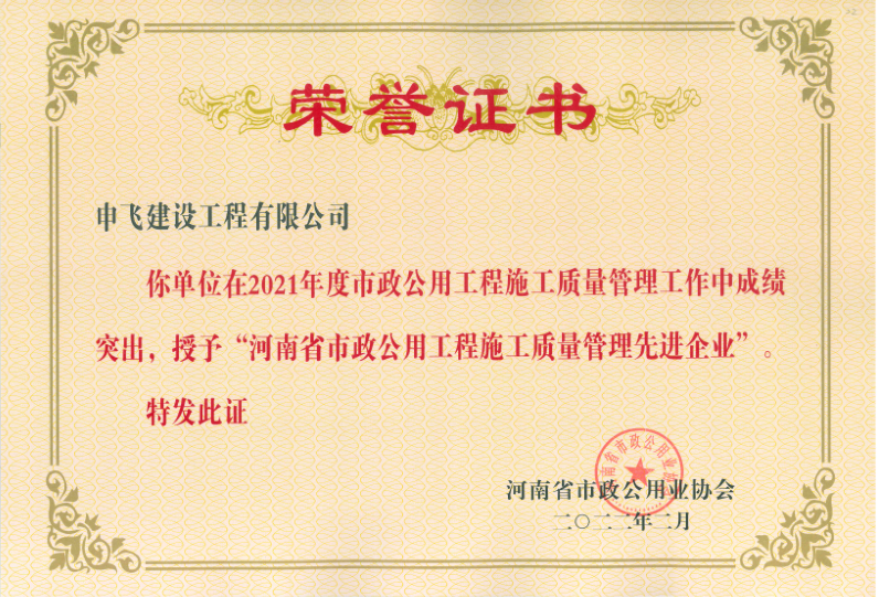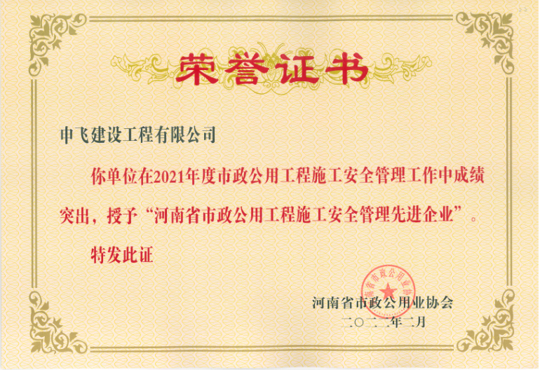 • [04-12]申飛建工再獲“省先進施工企業(yè)”、 “市政金杯獎”等多項榮譽