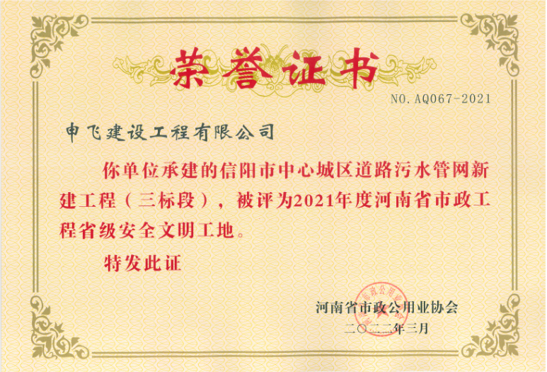 申飛建工再獲“省先進施工企業(yè)”、 “市政金杯獎”等多項榮譽 申飛建工再獲“省先進施工企業(yè)”、 “市政金杯獎”等多項榮譽